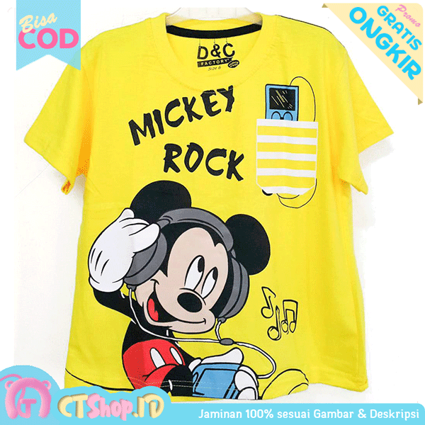 Baju Anak Laki Laki Kaos Anak Lengan Pendek Motif Mickey Mouse Rock Yellow 1 10 Tahun Lazada Indonesia